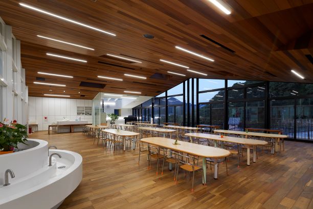 オープンキッチンの厨房です。専任の栄養士と調理師が給食を提供してくれます。